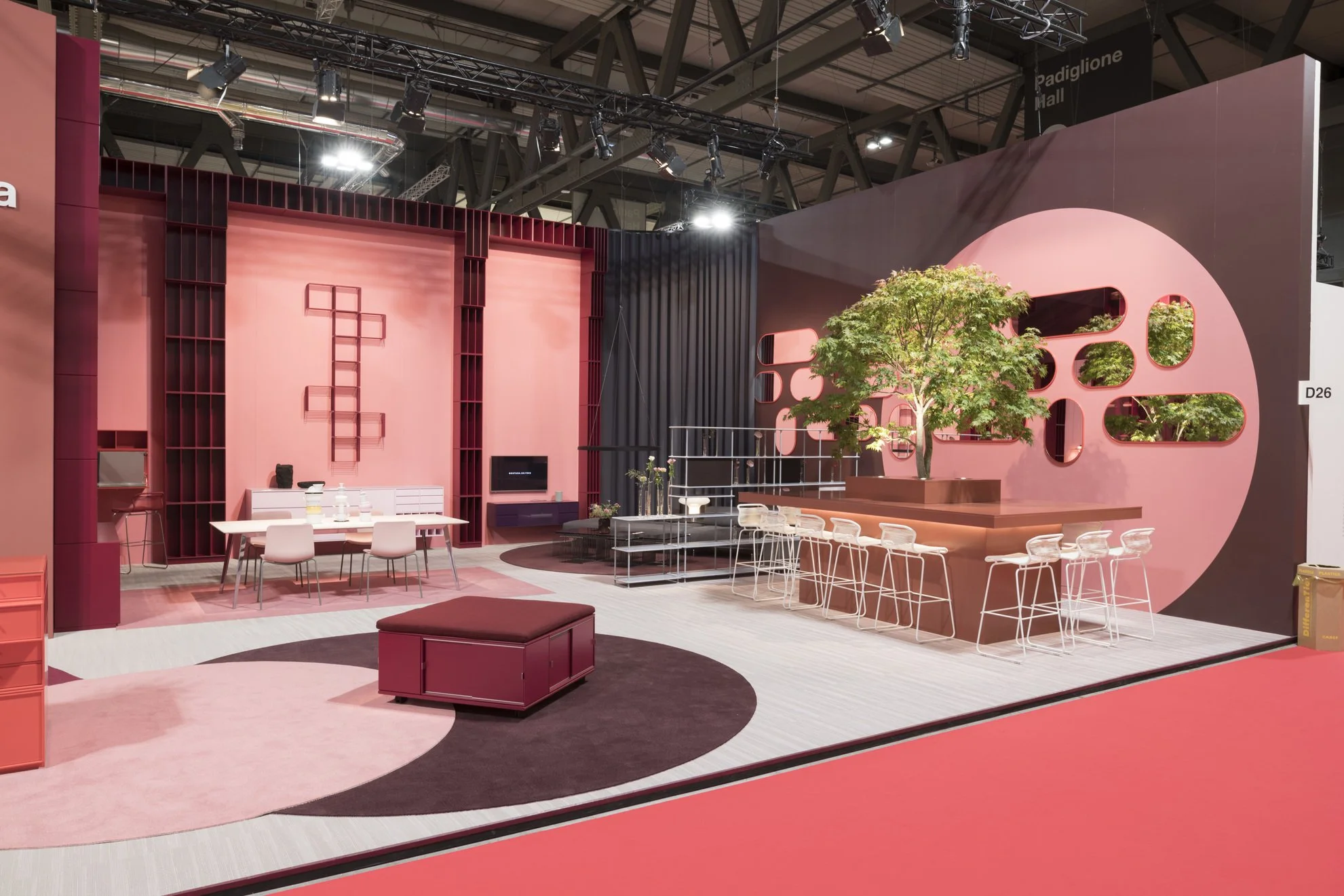 Shelving units, walls and freestanding elements framed the stand and highlighted the furniture.