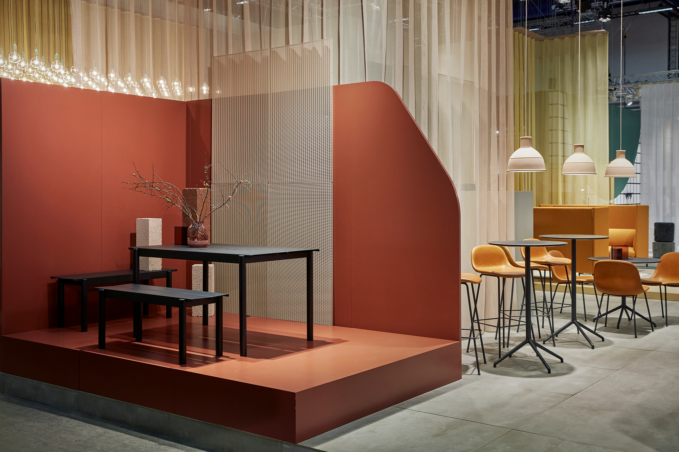For Stockholm Furniture Fair, Muuto needed an exhibition stand that could translate the brand’s Scandinavian design into a spatial experience. Based on reused elements and realised within a tight timeframe, Ambiente created an exhibition stand where transparency, colour and structure guide movement through the space. The result is a cohesive exhibition environment where brand identity, flexibility and precision are brought together as one.