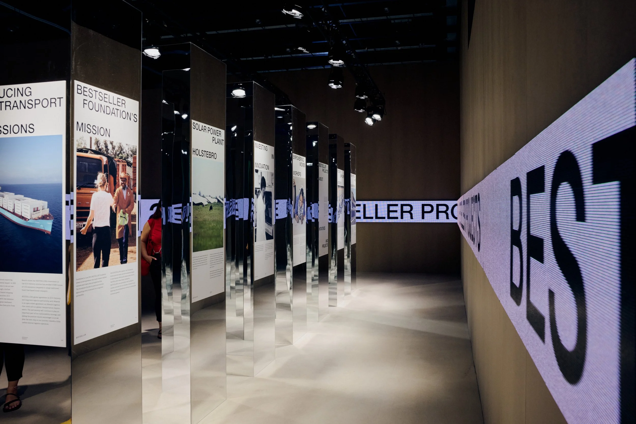 When Bestseller decided to bring all their brands together on an impressive 7,000-square-metre stand at the Copenhagen International Fashion Fair (CIFF), Ambiente was chosen as the partner to bring the vision to life. From the beginning it was clear that the project required a combination of precision, detailed planning and skilled craftsmanship. We took responsibility for the entire process, from the maturation of the design to the production of unique design elements and the overall logistics and assembly. With 42 craftsmen in place, we worked intensively for 12 days to ensure that all elements and details were executed perfectly. During setup and takedown, the installation team walked a total of 8,000 km — the equivalent of walking from Skanderborg in Denmark to Johannesburg in South Africa.