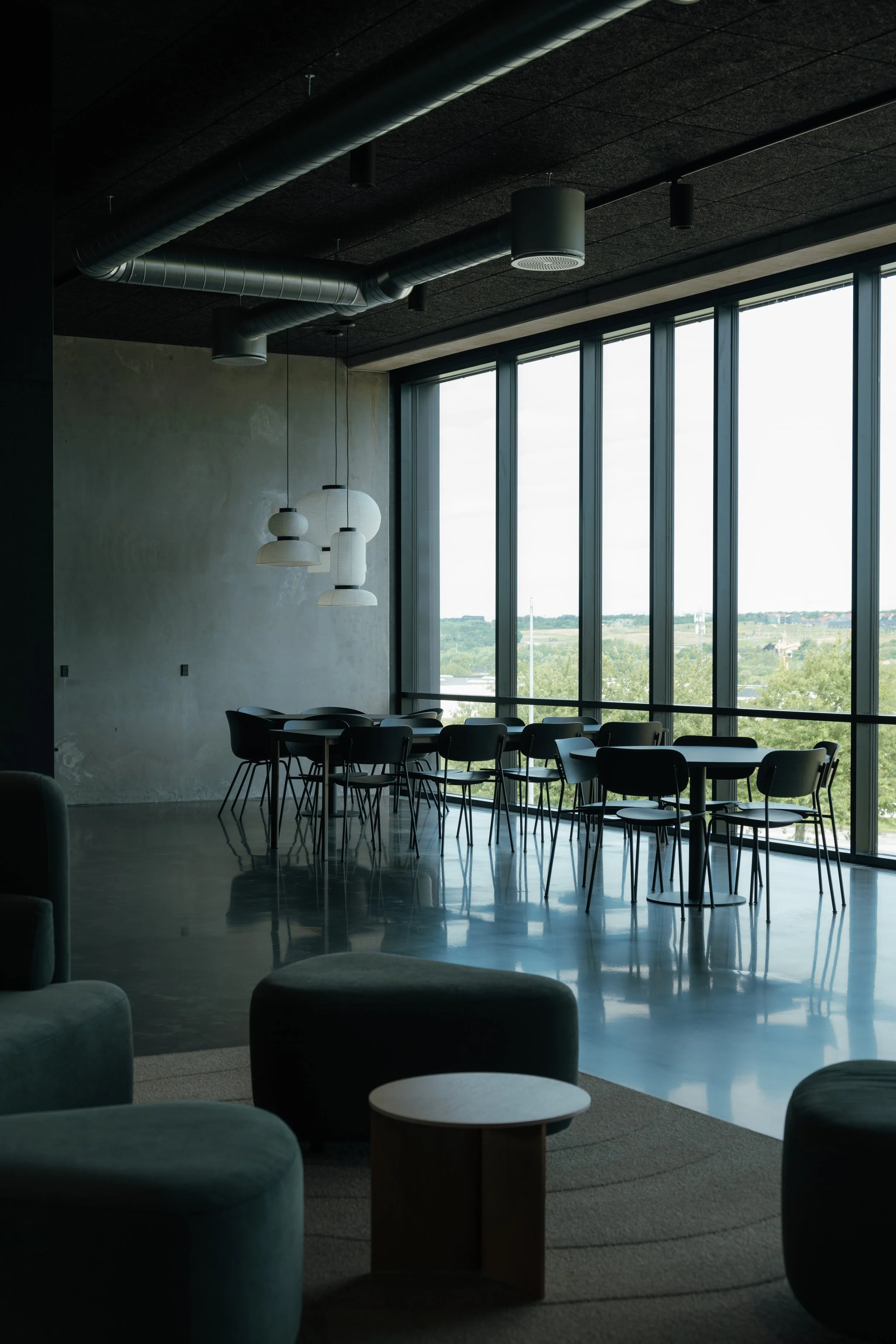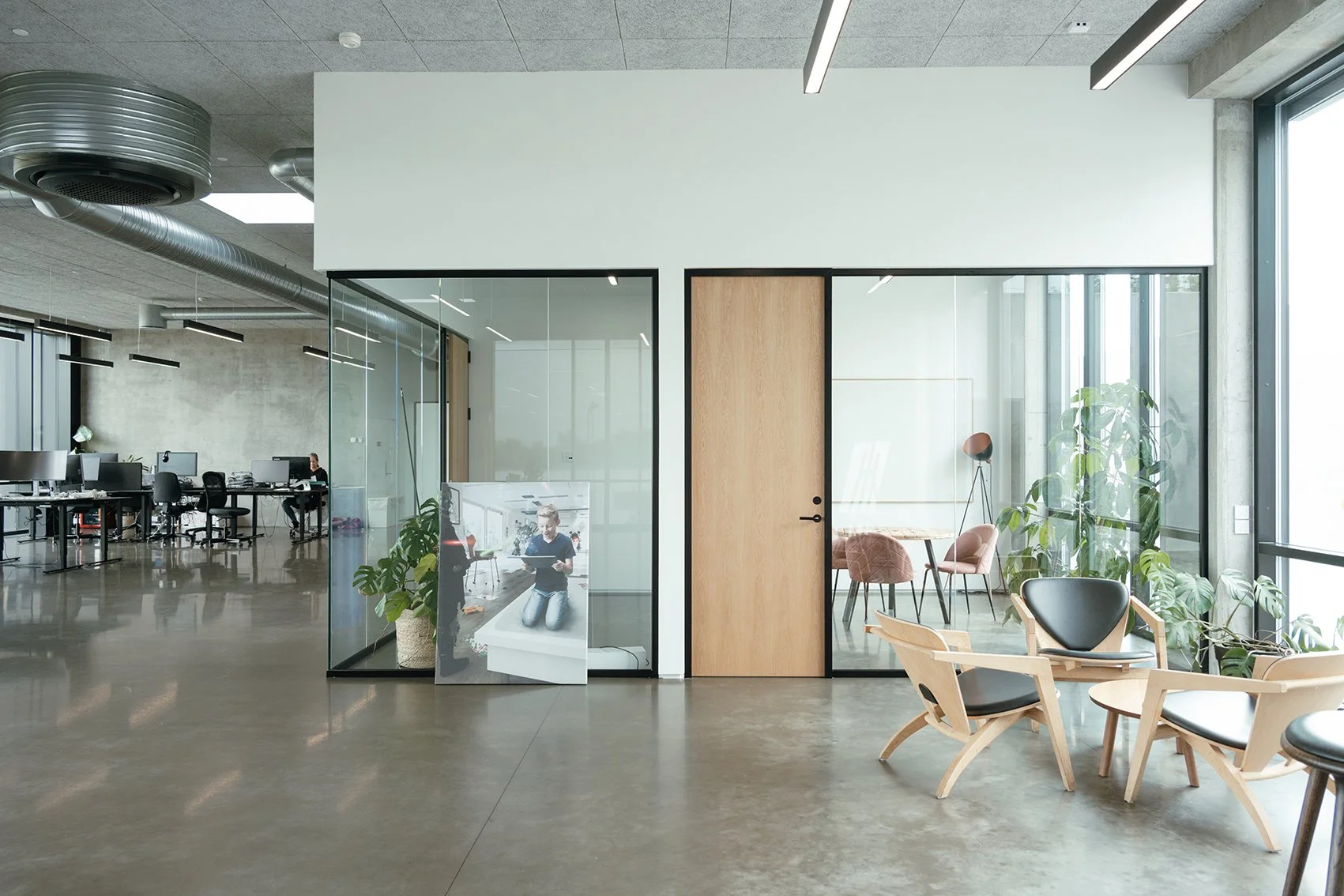 Ambiente was responsible for the complete interior floor plan, where a simple and well-organised interior is designed to create a homely atmosphere and an inspiring work environment. From office workspaces with acoustic solutions to shared offices that promote peace and quiet, every detail has been thought through to ensure optimal working conditions.