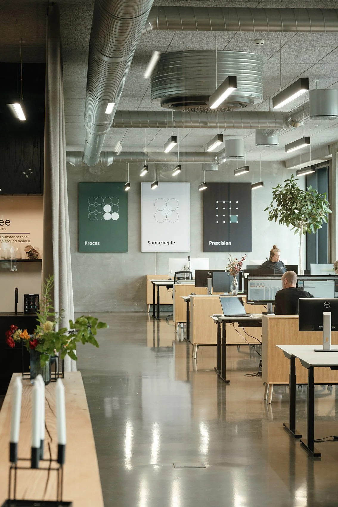 At Bytømrerens headquarters, craftsmanship and design go hand in hand. Aesthetics and functionality are combined in a stylish and welcoming universe where raw Nordic materials meet modern design.