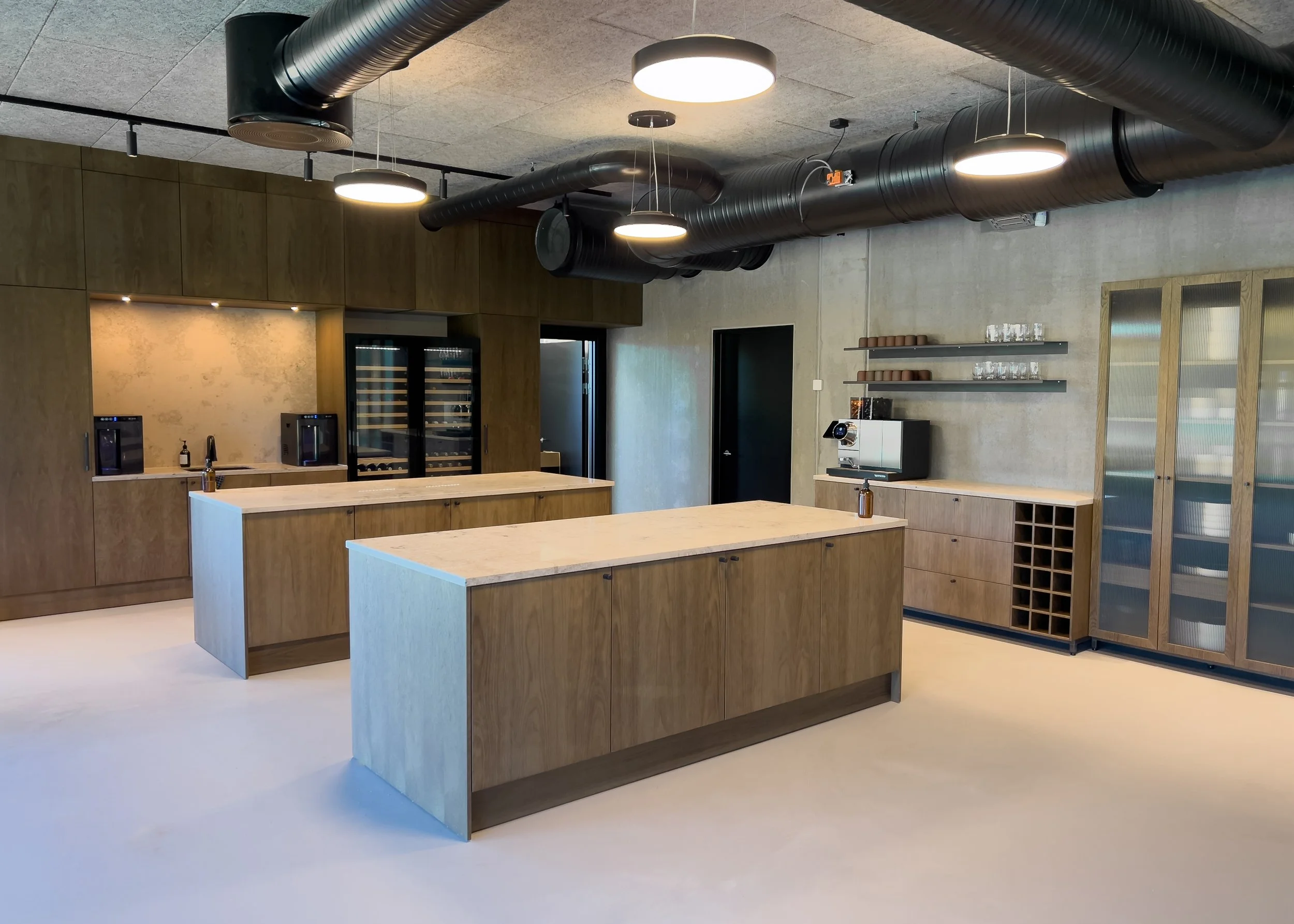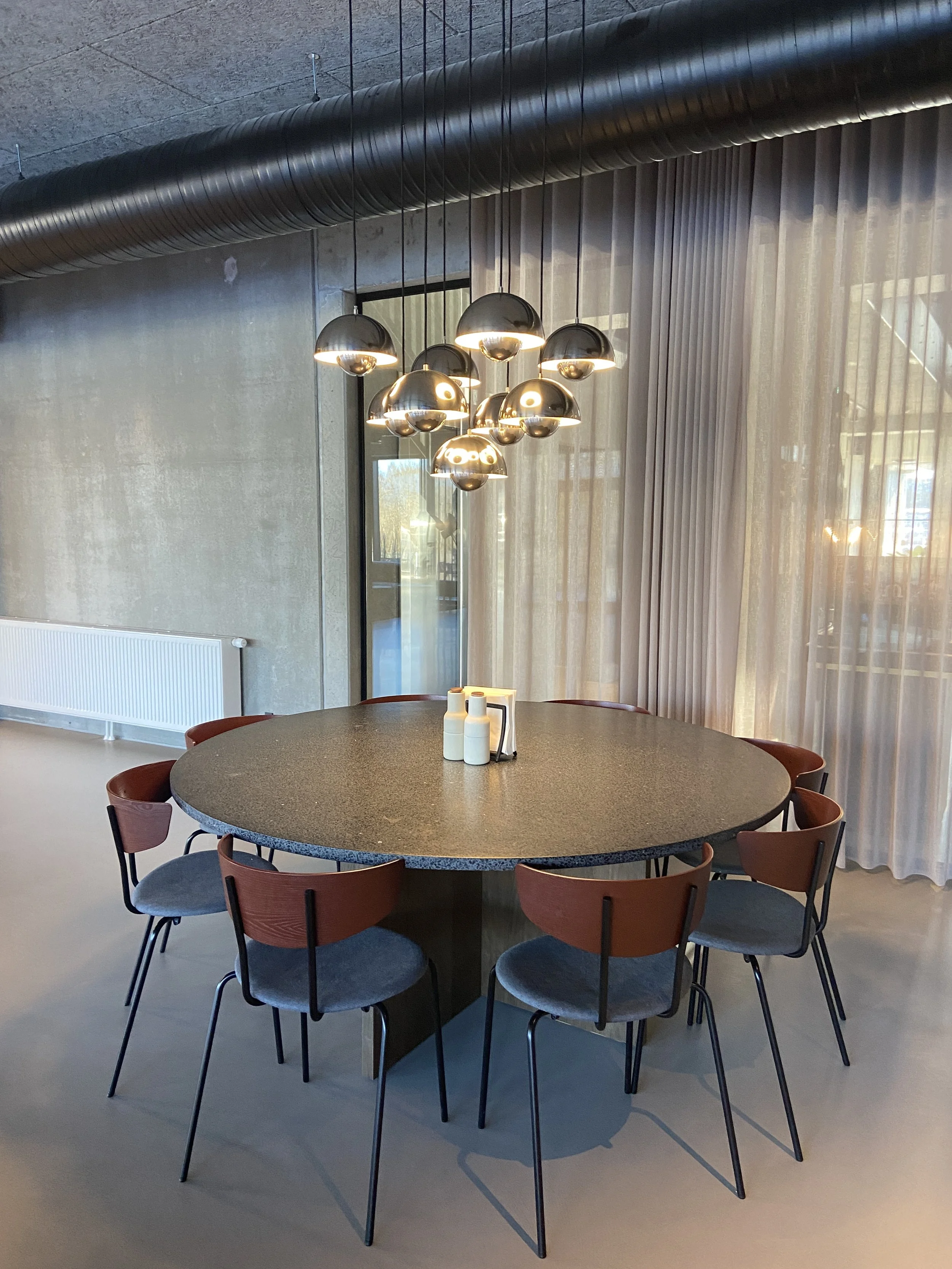 Ambiente has designed and implemented this atmospheric interior design concept, which also includes an office environment, conference rooms, staff restaurant and social spaces such as a padel court, fitness room, table tennis and large lounge areas. In the project, the focus has been on ensuring coherent space planning, a homely atmosphere with pleasant acoustics and good lighting, as well as several wow elements. The overall interior contains a large amount of bespoke equipment, developed to ensure the unique look and the desired functionality.