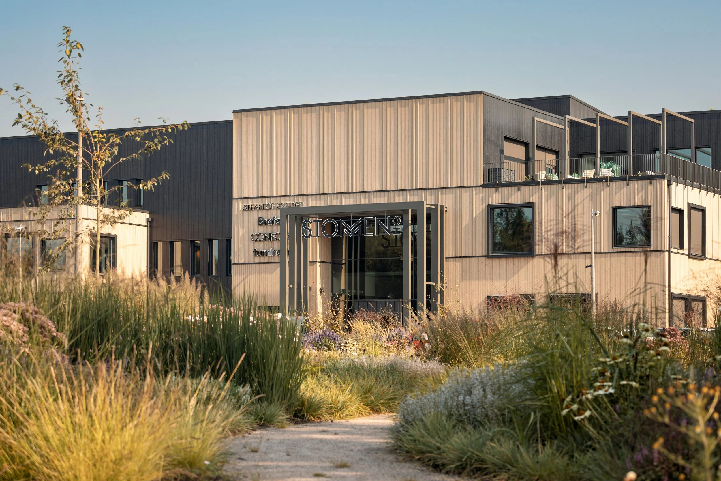 Ambiente has assisted Stommen Group with the design, craftsmanship, production of custom-made elements, and final assembly for their new headquarters in Sweden. The new domicile is an impressive combined headquarters and showroom of almost 8,000 m². Here, several of the group’s brands are gathered under one roof with the ambition to increase cross-departmental collaboration and support cultures with different working methods and needs.
