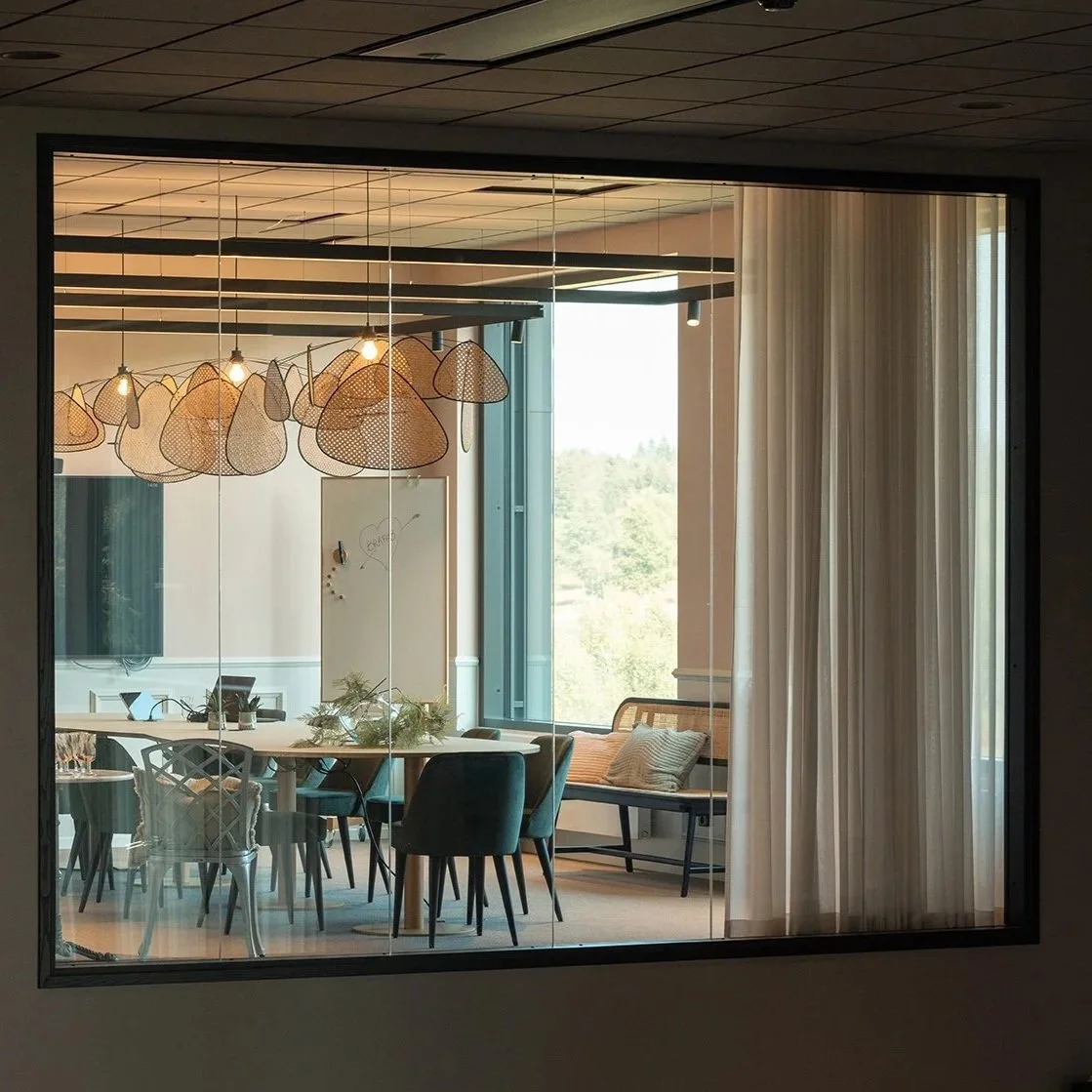 The three floors of the building are designed with inspiration from the surrounding Swedish nature. Shades of the forest floor are prominent on the ground floor, treetops and greenery dominate the first floor, and the second floor exudes lightness and bright skies. This thematic approach is also evident in the many meeting rooms, each with its own name and atmosphere. The meeting rooms support different types of work needs and desired moods for meetings and tasks, allowing you to choose between jungle vibes and oriental atmosphere, Nordic-inspired coolness, or the deep calm of the sea. Ambiente has delivered several unique pieces of furniture and installations to ensure the detailed realisation of Stommen Group’s desired themes with a wow effect.